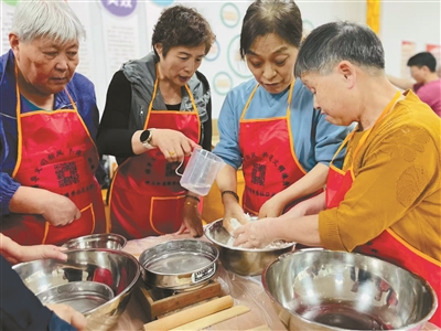 社区居民学做方糕。
