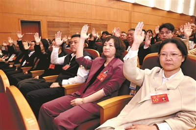 会议以举手表决方式,通过了《关于下沙至长安市域铁路工程建设项目工作情况报告的决议》。■记者 方铄 摄
