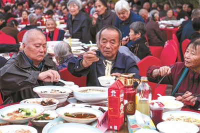 “这么大规模重阳宴,在我们科同的历史上还是头一次,搞得非常好,菜烧得很地道,非常好吃,还见到了很多老朋友、老邻居,感受到了大家对我们老年人的关心和尊重。”今年80岁的郭水泉高兴地说。“今天我和90岁的母亲还有妻子一起来参加这场重阳宴,特别的高兴,也特别的感慨,感慨国家的强大、社会的进步,和每个人对我们老年人的关爱。”今年72岁的许国甫说。