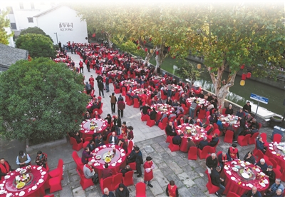 本报讯 金秋送爽,情暖重阳。10月29日,是一年一度的重阳节,当天下午,许村镇科同村科同老街上一片欢声笑语,500余名70周岁及以上的老人围坐一起,品十大碗、赏非遗韵、传孝亲情,现场气氛热烈,孝老爱亲氛围让人动容。