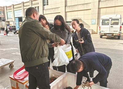 近日,在市农批市场水产海鲜区,不少市民来买大闸蟹。其中,有不少人是回头客,他们觉得这里的大闸蟹品质好,价格也实惠。