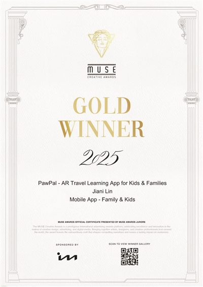 近日,一款名为“PawPal”的移动应用在国际设计舞台上大放异彩——荣获美国缪斯创意奖(MUSE Creative Awards)移动应用类金奖。这款由中国海宁姑娘林佳妮主导设计的儿童文旅教育APP,凭借其创新的AR互动体验和“有温度”的设计理念,从全球数千个项目中脱颖而出。该奖项被誉为“设计界的奥斯卡”,此次获奖不仅彰显了中国青年设计师的全球竞争力,也让更多人关注到科技与人文融合的无限可能。