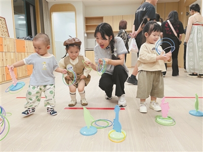 “这里不仅能托育,还能咨询儿童发育问题、参加育儿课堂,太方便了!”在海宁市托育综合服务中心的育儿课堂后,不少家长欣喜地表示。作为“一核两翼”模式的核心载体,这座嘉兴市首家标准化托育综合服务中心,不仅提供107个普惠托位,更融合人才培训、监督指导、育儿咨询等一站式服务,成为海宁托育服务的“核心枢纽”。
