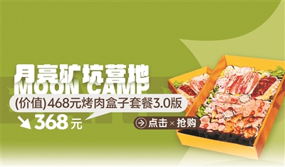 烤肉盒子套餐3.0版:368元团原价468元烤肉套餐(提前一天预订)。套餐包含普通天幕1顶、桌子1张、椅子3把,卡式炉烤盘1套,剪刀、夹子、蘸料、油、刷子、餐具(超出门票桌椅需额外付费)。
