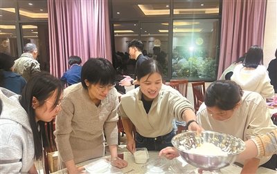 至于为何选择小笼包?这背后也有深思熟虑。李丹介绍,此前社区也曾开设过中式面点课,教授糯米蛋、驴打滚、汤圆等,反响很好,但受限于场地和设备,只招收了二十余人。而小笼包制作对器具要求相对不高,只需分桌就能操作,场地限制小,因此能够将名额大幅放宽至90人,让更多居民有机会参与进来。