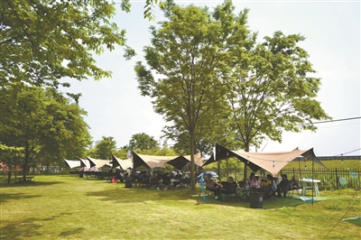 “天气晴好的时候,基本每天都要接待100多位客人,来自全国各地的都有。今年我们还新打造了宴会厅,最多可承接30桌宴席。”营地负责人潘震球介绍,此外,还有星空电影、露天KTV、篝火晚会及定期主题活动等,为游客带来新潮、时尚的打卡体验。