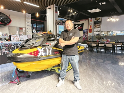 “我对机械和水上项目的执念,早在军营里就生了根。”聊起与水上摩托艇的初遇,徐铁鸿的语气里满是回忆。2004年,18岁的他应征入伍成为一名海军。那段当兵的岁月里,军舰的轰鸣、水上装备的操作,让他对“与水同行”的运动埋下向往的种子。2006年退役后,原本痴迷摩托车的他,在同样钟爱极限运动的父亲启发下接触到水上摩托艇,“当时全中国玩这个的人没几个,第一次接触以后,我就觉得既新奇又对胃口,一下子就迷上了。”