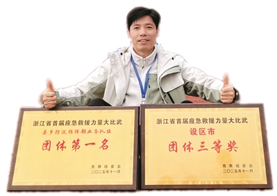 在日前落幕的“浙江省首届应急救援力量大比武”中,来自海洲街道应急消防管理站的工作人员马奇峰,凭借精湛的无人机操控技术和扎实的理论功底,与队友通力协作,一举夺得全省第一。