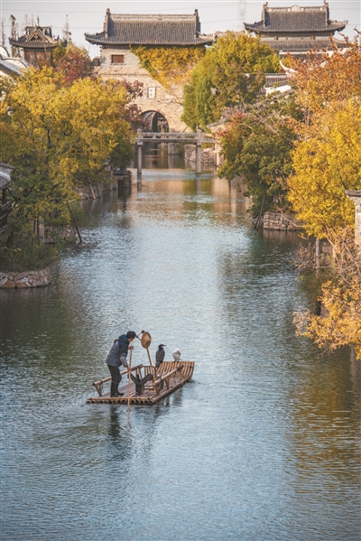 初冬时节,盐官古城-潮乐之城,一条竹筏缓缓划过水面,欸乃一声划破了小桥流水间的静谧。今天,我们迎来小雪节气,来这里观赏大潮的壮阔,感受彩叶的斑斓,聆听音符的跃动。 ■大潮拍客 子乐 摄