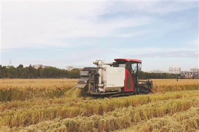 联合收割机提高水稻收割效率。