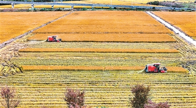 横山社区的万亩良田迎来丰收。■记者 杨立超 摄