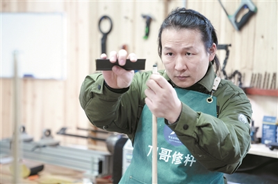 在台球运动里,球杆就是选手们征战赛场的“武器”。当这件“武器”出现裂痕、失去准星时,就需要球杆维修师让它重焕光彩。在长安镇、高新区,就有这样一位球杆维修师——杨金飞。