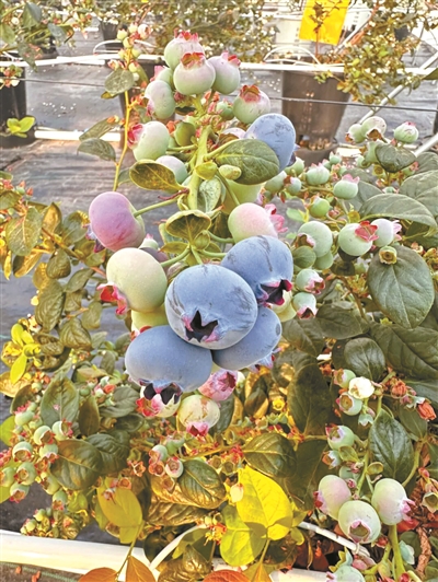 “土壤里的离子成分复杂,很难人为精准控制。而蓝莓是嗜酸植物,适宜的pH值在4.0-5.5之间,采用无土栽培模式,就能更好地调控酸碱环境,种出来的果子也会更大更甜。”基地技术指导员施宝媛向记者解释道。除了栽培模式创新,基地全程使用净化水灌溉,养分和水分按需供给,既保证了蓝莓品质,又能减少病虫害侵扰。