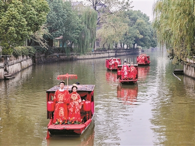 90后企二代沈涛则是简化婚礼流程,直接将大摆两天的婚礼“流水席”缩减至一天,同时将桌数减半。作为非遗漳缎的从业者,沈涛还亲自参与设计生产漳缎礼服,举办了一场简约不简单的“文化宴”,以一种更加轻松的方式,倡导文明婚俗新风尚。“我们希望化繁为简,让婚礼回归最初的美好。”沈涛的话语道出了年轻一代的新风追求。