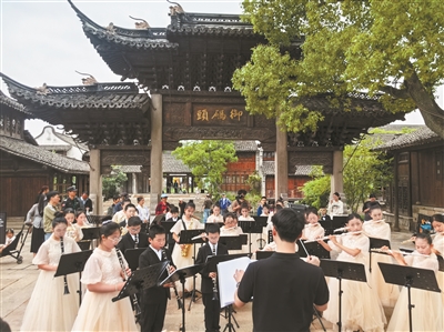 平台搭建,构建“学校+社区”的展示舞台。从“五四”青年节在潮乐之城御码头广场的户外首演,到教师节与嘉兴大潮爱乐乐团的联袂献礼,再到组织学生观摩高规格的“潮起·欢乐颂”交响音乐会,学校不断为学生创造展示、学习的机会。
