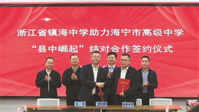 在“高中-高中”协同方面,学校与镇海中学正式签约合作,通过教师观摩优课、听取讲座、分享心得等形式,学习借鉴拔尖人才培养的成熟经验,未来两校还将在尖优人才培养、英才班课程建设等领域开展深度合作,推动培养质量再上新台阶。