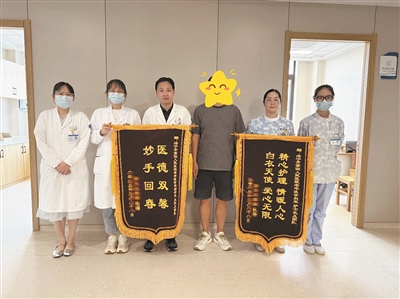 三个月前,张大伯又渐渐开始出现行为异常,考虑阿尔茨海默病合并精神行为症状加重。家属因为出差在外地,故而非常着急。为此,康养中心立即启动医养结合双向转诊机制,与老年医学科无缝对接,在征得外地家属同意后,迅速将患者转入医疗区治疗。得益于及时的医疗干预,张大伯的病情在短时间内得到有效控制。后续,家属专程送来锦旗表示感谢。