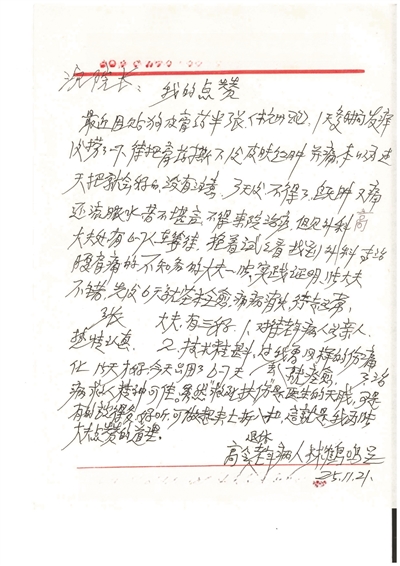 近日,90岁高龄的退休老干部林鹤鸣专程从家中赶到许村中心卫生院,将一封饱含深情的点赞信送到医院,字里行间满是对基层医疗服务的认可与感激。