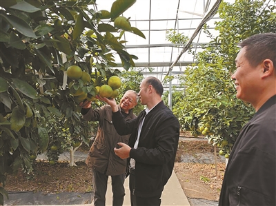 闸口村党委书记、村委会主任马其峰道出了这座柑橘园的故事。柑橘是黄湾的特色,当时村里想进一步推广优质柑橘品种,同时增加村民收入、壮大村集体经济。在2019年,村里跟镇农业农村办和几位水果种植专家,一起赴省农科院柑橘研究所的黄岩基地,考察柑橘种植技术和大棚等设施。经过多次沟通,定下了红美人、鸡尾葡萄柚、甘平等几个优质品种。至2019年12月底,谋划了这座柑橘园。