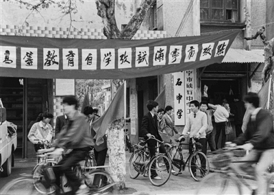 这里有最执着的背影。照片中,一位老人格外引人注目。他是海宁当时年龄最大的考生,66岁的王成。每次报考和考试,他的行囊里除了书本,还有手电筒和拐杖。居住在乡下的他,需要步行近二十公里才能赶到考点。那蹒跚却坚定的步伐,是对“活到老,学到老”最完美的诠释。