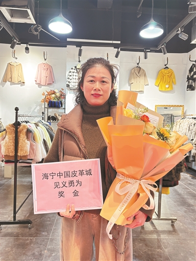 为了感谢朱海娟的这份善意,12月15日上午,海宁中国皮革城安排人员来到朱海娟的店中,送上鲜花致以敬意。“希望大家都能向朱海娟学习,在别人有困难的时候,主动伸出援手,宣扬社会正能量。”海宁中国皮革城经营管理有限公司常务副总经理吕超杰表示。