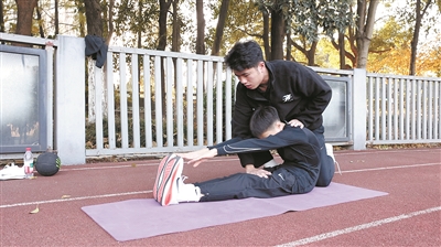 “注意摆臂姿势!”“坚持住,最后一圈……”一个周六下午,学员汪昊承家附近的学林体育公园里,杨峥毅正对其进行长跑训练。汪昊承是一名初二学生,爱好长跑。“平时学业繁忙,没有时间到体育机构训练,并且户外场地更适合长跑练习,所以我请杨教练上门授课,帮助我在长跑上有所突破。”汪昊承告诉记者。