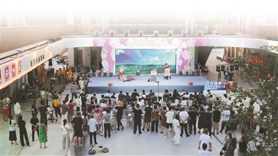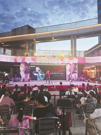 走在H97内广场,记者发现,中央的专业舞台是H97的“心脏”。这里配备了大屏与音响系统。在此基础上,H97联合海宁市文化馆推出“文艺赋美”常态化演出。每周末的音乐会、街头表演、棋牌比赛轮番上演,为商圈注入持续活力。