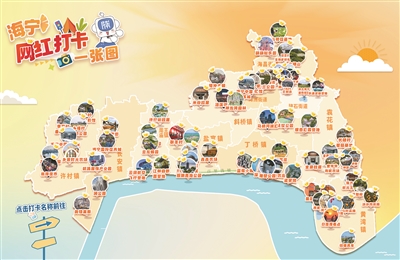 “海宁网红打卡一张图”整合潮城优质文旅资源,从刷屏全网的自然奇景到充满烟火气的人文角落,从动感十足的运动基地到瓜果飘香的田园农场,每一个点位都经过精心筛选。