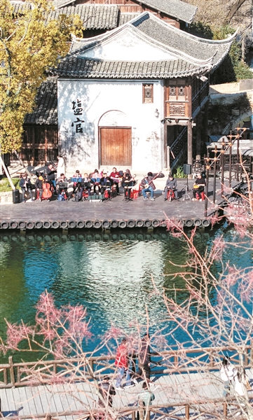 漫步盐官古城-潮乐之城,总能与一段段旋律不期而遇。动听的音乐,让人忍不住放慢脚步,沉浸其中。 ■大潮拍客 潘玲珑 摄