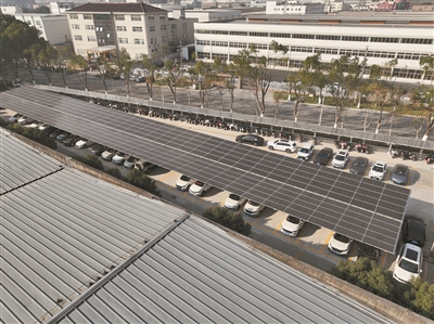 企业利用厂区车棚建起光伏电站。