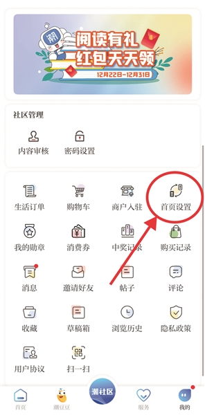 在“首页设置”选择新闻或生活页面。