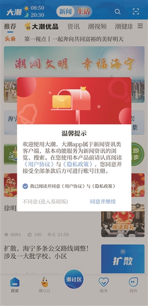 更新后首页会弹出温馨提示,点击同意并继续会有默认首页的初始设置,根据个人喜好按照提示完成设定即可。后续想要更改设置,可在“我的→默认首页”里更改。