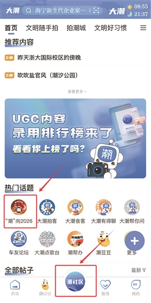 目前,互动话题仍在进行中,欢迎大家打开大潮APP首页,点击底部潮社区,点击热门话题#“潮”向2026#发帖,大潮君还为大家准备了新年好礼。注意,活动将持续到2026年1月3日,图片或视频必须是原创的哦!