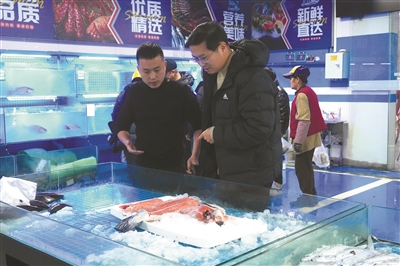 市民在潮鲜海鲜城选购海鲜。