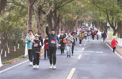 在盐官潮汐公园,不少市民选择用一场元气满满的迎新跑开启新一年。■记者 俞砚峰 摄