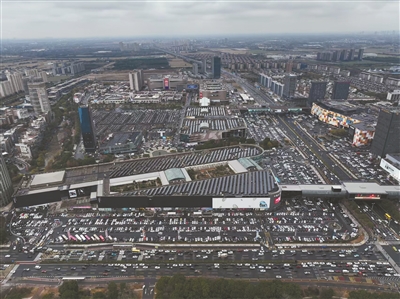 海宁中国皮革城消费火热,广场停车位一位难求。