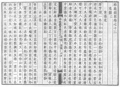 《格致镜原》卷七十二,花类之“紫薇花”,收集整理了多种古籍文献中关于紫薇花的记载。(《格致镜原》江苏广陵古籍刻印社1989年影印本)