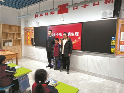 本报讯 “今天,我们要在这里表扬一位了不起的小朋友,徐泽同学!”1月6日,狮岭小学课间休息时间,因为一场特别的嘉奖仪式变得格外热闹。巡特警大队民警与失主周志声一同走进校园,带着表扬信、小礼品,为拾金不昧的徐泽送上特别的嘉奖。
