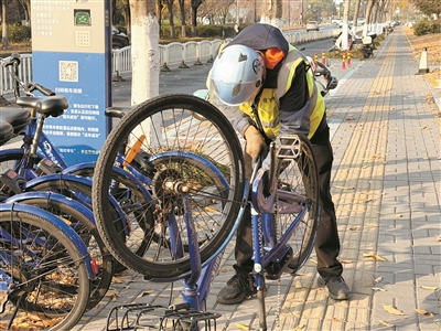 “哪辆‘小蓝车’有什么问题,手机上会显示。”朱建浩说,他的工作节奏紧跟着数据走,需要做的是逐一前往对应停车点核查、修复。