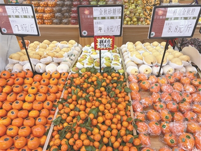 近日,记者走进市区一家水果店,一进门就瞧见金灿灿的“金秋砂糖橘”,标价4.8元/斤;相隔两个货位,还有个头更大、果肉更饱满的同品种砂糖橘,标价为6.8元/斤。