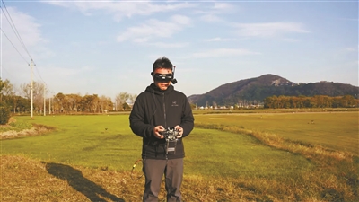 黄湾镇大尖山景区的午后,一阵急促的蜂鸣声划破草坪的宁静。循声望去,一架小飞机如灵动的雨燕,在白色障碍门间高速穿梭。“这是穿越机螺旋桨切割空气发出的锐响,时速接近200公里每小时。”陈昊摘下图传眼镜,介绍道。