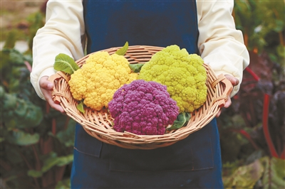 三色有机花菜开始采摘。