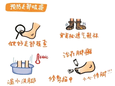 定期筛查。糖尿病患者每年至少接受1次足部专科检查,涵盖神经功能测试和血管超声。