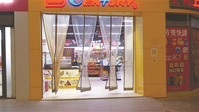 晚上8点多,在园区入口处,郑凤丹经营了6年的超市依然灯光明亮。