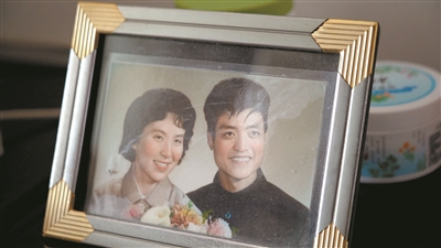 他们房间的床头柜上,摆着一张老照片。照片是两口子结婚时在上海的照相馆里拍的。当年,殷建生29岁,胡慧英28岁。