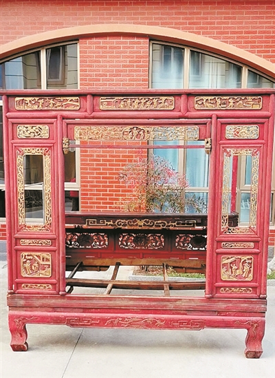 本报讯 近日,周王庙镇上塘景苑小区张先生家门前出现了一张红色的老木床。这张床非常特别,有八只脚,而且做工讲究。一下子,吸引了不少居民的目光,大家纷纷围拢过来,说这是从没见过的“老古董”。