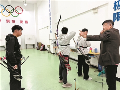 国字号教练进校园 手把手点拨射箭小将