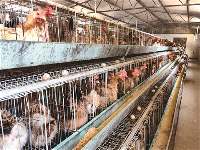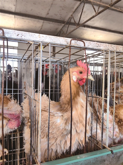 近日,记者走进位于开化县桐村镇的开化宏腾羽农业开发有限公司,只见整个场区依山而建,办公区、粪污处理区、种鸡养殖区、孵化车间、饲料仓库和消毒室等分布其中。经过消毒通道喷雾消毒后,记者进入养殖核心区域。在最外侧的鸡舍里,自动化育雏室、育成笼内饲养着约3000羽开化翻毛鸡。