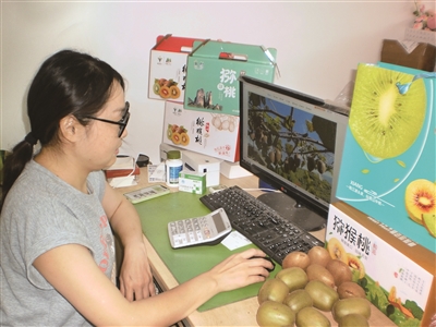 近日,?江山市清湖街道花园岗村的廖小艳,正通过网络向上海客户销售猕猴桃。近年来,她在江山农商银行的帮助下,在江山市区鹿溪路附近贷款租了店面,在网上销售猕猴桃,去年,她共销售猕猴桃10万多公斤,为助农增收作出了贡献。 ? ?通讯员 陈金阳 摄