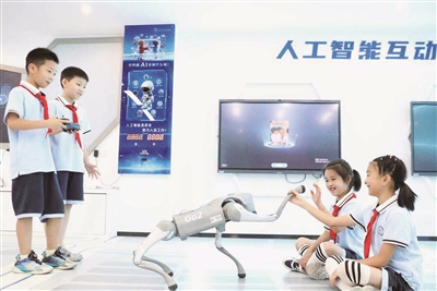 9月9日,在浙大城市学院附属学校的“AI未来馆”内,学生在教师指导下参与人机对弈、体验智能仿生手、运用AI进行专注力训练等多元场景教学。该校组建专项团队,自主开发贴合学生认知规律的教学内容,为人工智能教育的有效落地提供保障。
